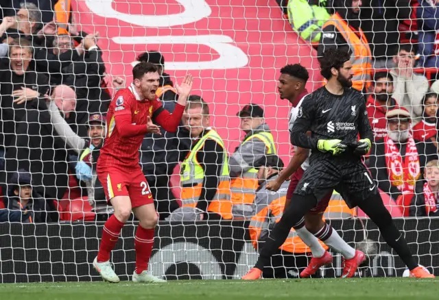 Robertson đã có trận đấu đáng thất vọng.Nhưng nguyên nhân không phải vì những pha bứt tốc quen thuộc bên hành lang trái, mà bởi bàn phản lưới nhà suýt chút nữa khiến The Reds đánh rơi chiến thắng ngay tại Anfield.Vào sân từ ghế dự bị và mang đến nỗi loSau hiệp một đầy chủ động với bàn mở tỷ số của Luis Diaz từ pha kiến tạo đẳng cấp của Salah, HLV Arne Slot quyết định tung Robertson vào thay Kostas Tsimikas ở phút 60 nhằm tăng cường khả năng phòng ngự cũng như tạo áp lực tấn công biên.