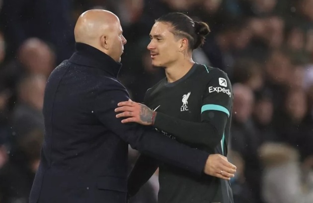 Arne Slot và Nunez.Trong trận đấu giữa Liverpool và Girona ở lượt trận thứ 6 vòng phân hạng Champions League, Darwin Nunez một lần nữa gây thất vọng khi không thể hiện được khả năng của mình dù có cơ hội ra sân đá chính. Với tỷ số thắng tối thiểu 1-0 nghiêng về Liverpool, bàn thắng duy nhất được ghi từ quả penalty của Mohamed Salah ở phút 63, tuy nhiên, màn trình diễn của Nunez tạo ra làn sóng tranh cãi với nhiều CĐV và các nhà chuyên môn.